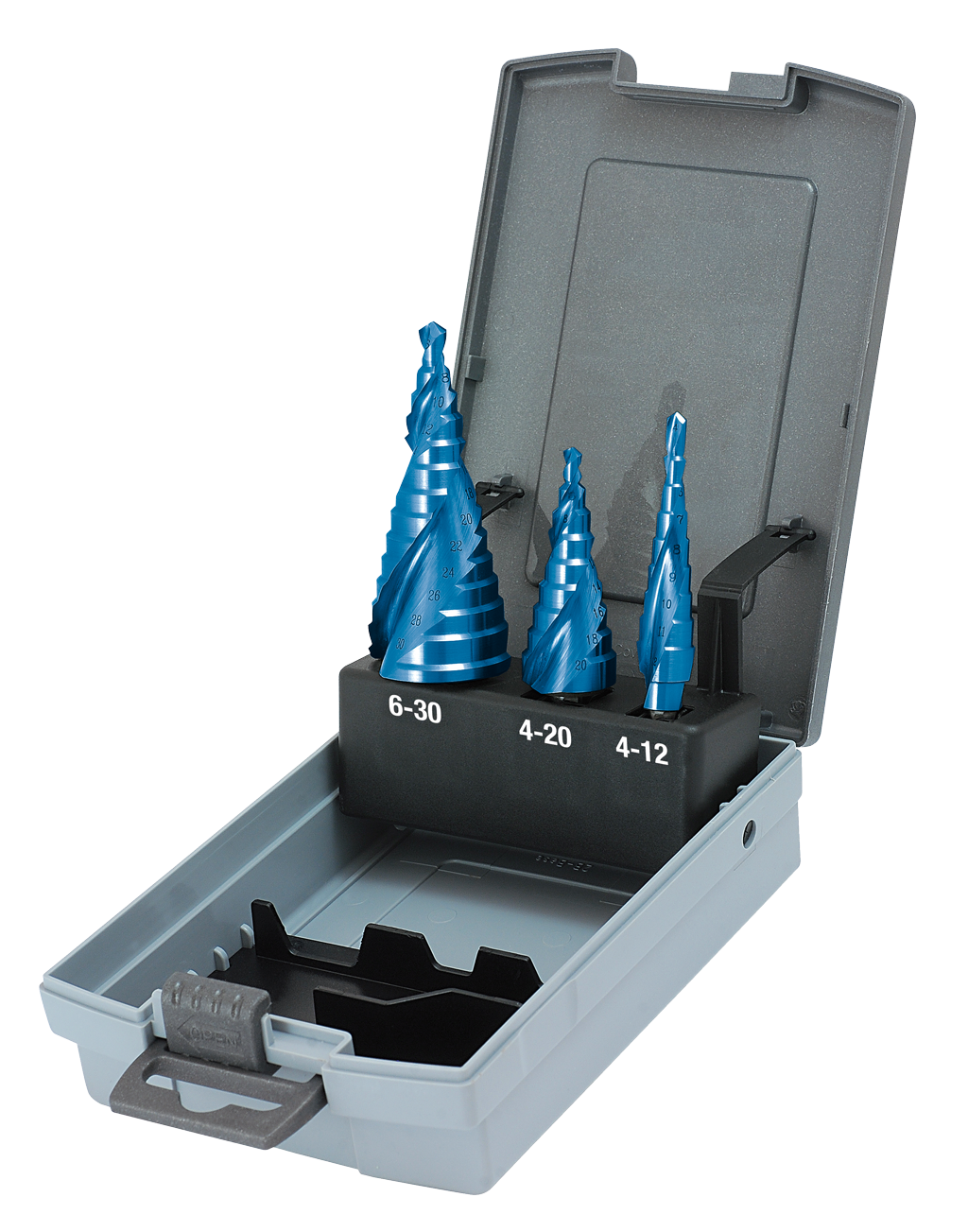 Karnasch TrinBorsæt 4,0-30,0mm 3stk. M/Skaftflader HSSXE BlueDur i kassette