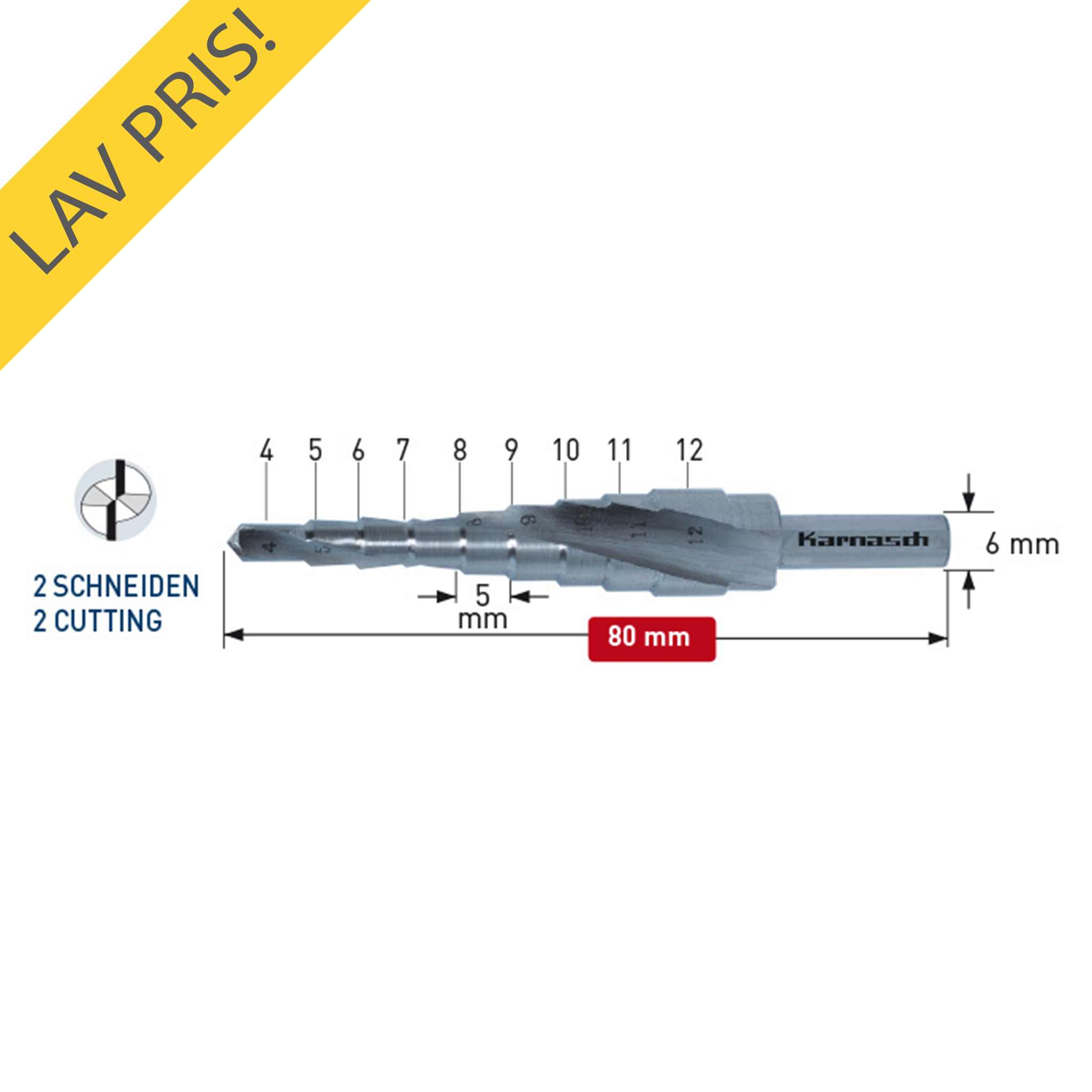 Karnasch Trinbor 4,0-12,0mm 2,0mm stign. 2 Skærs. HSSXE