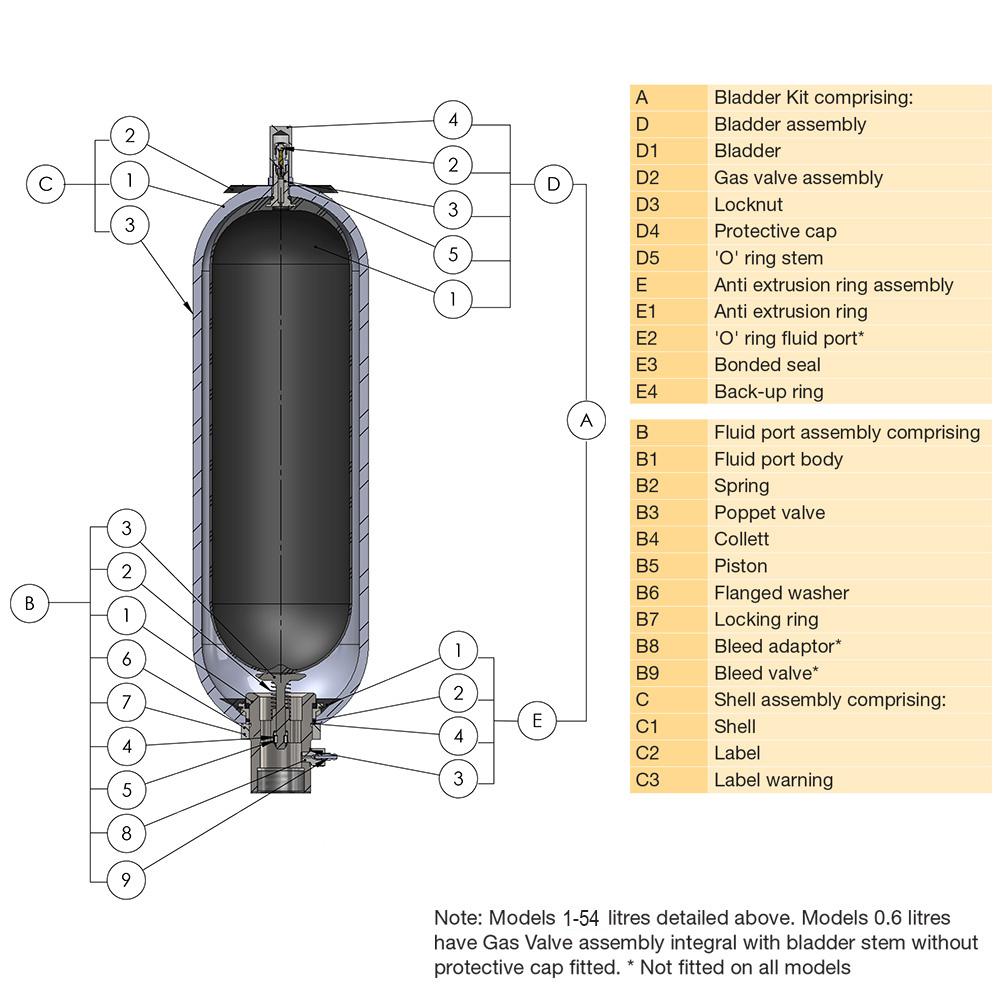 | Elastomer | Standard NBR (Nitrile) bladder |