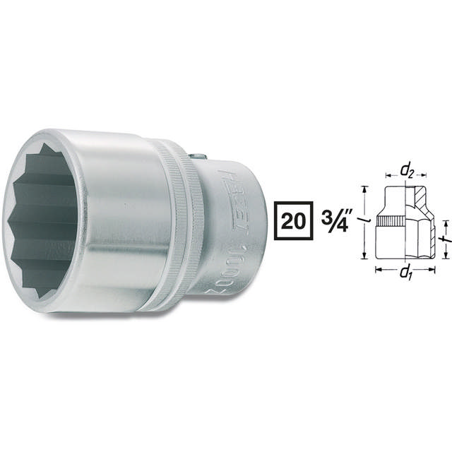 "HAZET TOPNØGLE 12-KANTET 3/4"