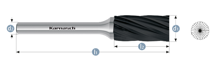 Karnasch HM Rotorfræser Blacktec Form B Ø12x25 HP7 ALU 6mm Skaft